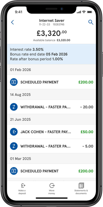 Alternatively, you can make regular or one-off payments via your bank account. All you’ll need is your Internet Saver sort code and account number. Please note you can only do this 48 hours after account opening.